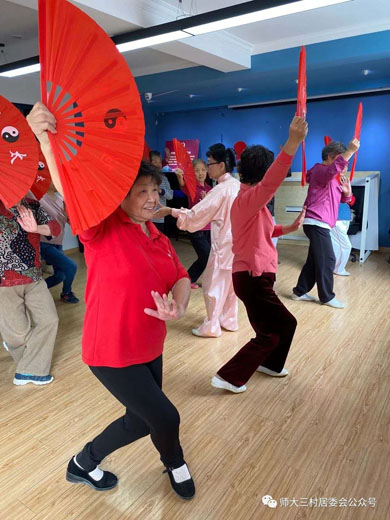 师大三村社区太极扇培训课的成员年龄区间为60-80岁之间,其实学起来是很慢的。但是在所有人的共同努力下,只用了八节课就学会了太极扇《中国功夫》,可以看出大家回去也是认真练习的。