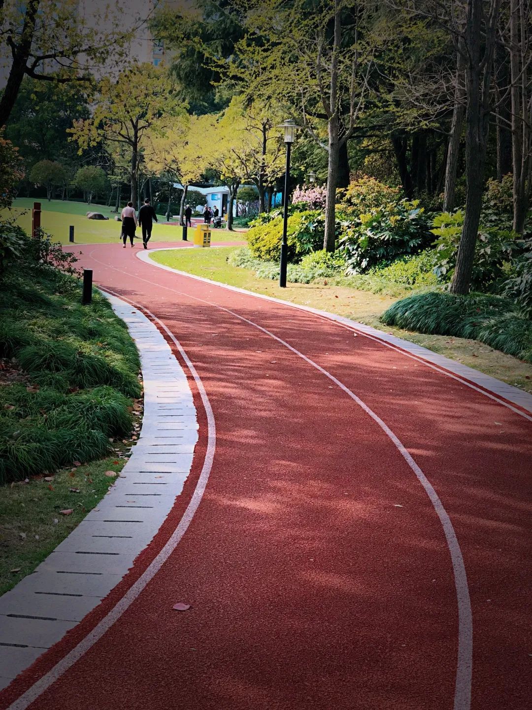 漫步于红色的健身步道中,听着虫鸣鸟叫,看着花花草草,整个人都会觉得神清气爽。来来往往的市民,有的边走边停、驻足拍照,留下一派春光。还有市民在健身区休闲锻炼,强身健体、陶冶情操,构成了一幅和谐的诗意画卷。