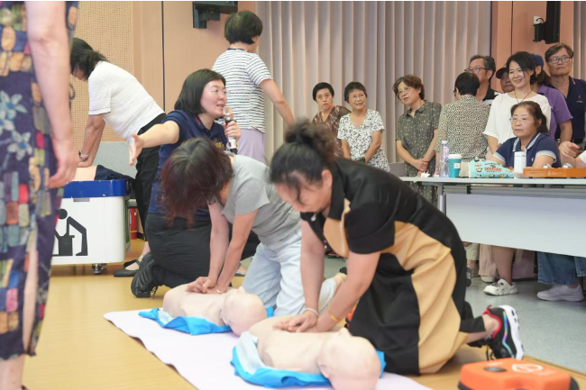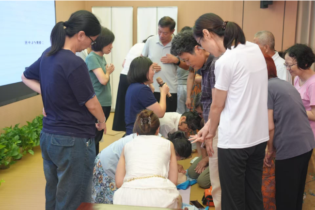 讲座伊始,赵欣老师便以银发群体易于理解的语言风格切入,一句 “希望急救不是医生的专利,而是每位市民都能上手的生命技能”,瞬间抓住了在场听众的注意力,也点明了本次讲座的核心意义。授课过程中,她化身“安全导游”,将原本枯燥复杂的急救流程,拆解成朗朗上口的口诀,让专业知识变得通俗易懂、好记好用。