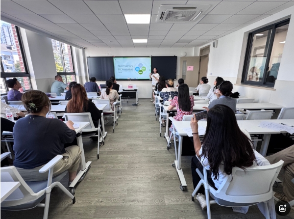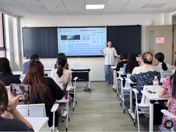 周雪梅阐述了上海深度老龄化社会背景下发展高质量老年教育的重要性和紧迫性,介绍了岚皋校区总体规划与发展目标,以“人文为本、开放优先、科技赋能、开放共享”为理念,数字赋能,拥抱未来智慧生活,错位发展,满足高品质学习需求。围绕后续工作,她提出要在社会资源整合、师资队伍建设、智慧校园打造和质量保障强化等方面持续发力。最后,周雪梅对全体教师提出几点希望:坚持以学员为本,传递温暖关怀;坚守师德底线,强化思政引领;规范教学流程,提升课堂质量;持续更新知识结构,适应时代发展需求;积极创新课程形式,努力打造特色品牌。