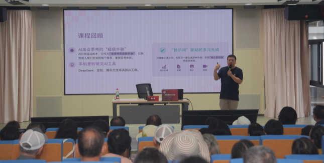 10月15日下午2点,“普陀雅韵大讲堂”秋季系列讲座的第四场——“科技学堂·AI大模型与生活赋能”活动,在普陀区老年大学岚皋路校区火热举行。这场聚焦前沿科技的讲座,宛如一块强力磁石,吸引了众多居民,不少人甚至跨区而来,只为亲身感受这场科技盛宴的独特魅力。