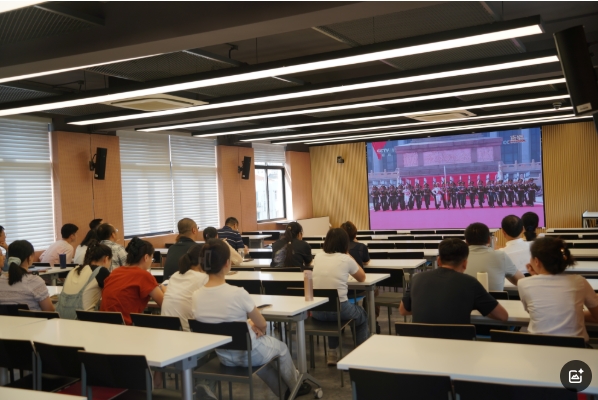 9月3日上午,学校组织全体党员、教工团员、统战人士以及其他教职工在各分校区会议室集中观看纪念中国人民抗日战争暨世界反法西斯战争胜利80周年大会的直播。