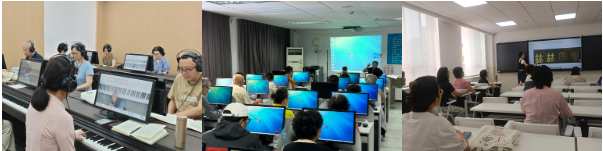 课堂作为教学核心场景,融合多样形式与丰富内容,充分调动学员们学习积极性。智慧钢琴课上,学员随教师指导弹奏乐谱,系统实时标注错误音符和节奏,实现高效练习。“AI时代信息基础入门”和“AI应用操作”从电脑的基础操作和智能手机的应用入手,学员们尝试用图像工具“翻新”老照片、以语音助手整理旅行随笔,使科技成为生活与交流的新助手。