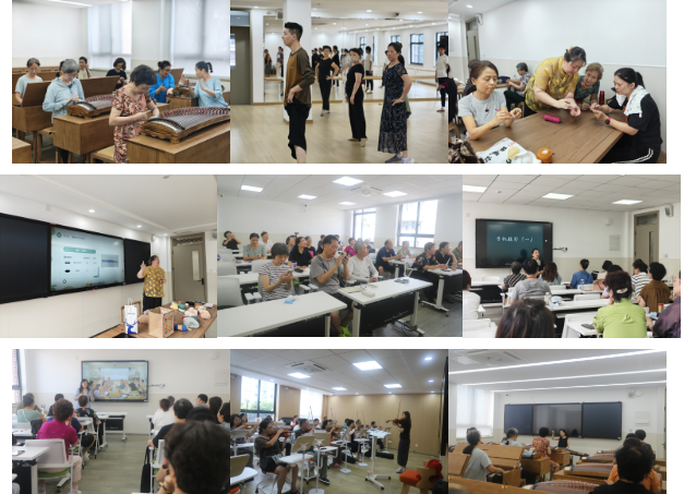 此外,校区还全新开设非遗系列课程,邀请非遗传承人授课,带领学员体验传统技艺的魅力。这些课程不仅为老年学员的精神文化生活增添了新色彩,更让盘扣、香道等非遗项目在“银发课堂”中得到传承与推广。瑜伽与太极拳课程同样深受青睐,不仅能帮助老年人锻炼身体柔韧性、增强体质,还能调节身心状态,实现“身体与精神的双重滋养”。