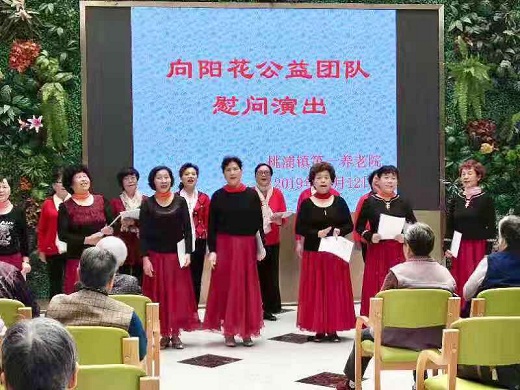 9:00,演出开始,朗诵、歌唱、舞蹈,还有戏曲,节目一个接一个;与此同时,志愿者们将事先准备的橘子、香蕉、护肤霜等慰问品依次发给老人们。老人们时而点头、时而致谢;时而鼓掌、时而跟唱,人人笑逐颜开,身心愉悦!