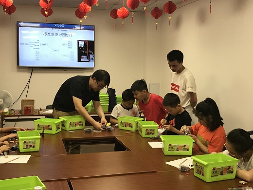 为丰富普陀区各社区中小学生暑期活动,培养少年儿童学科学、爱科学、用科学,以适应未来智能科技社会的发展,普陀区社区学院与上海太敬机器人股份有限公司机器人科技文化体验馆合作,把最新的科普教育资源落地至普陀区各学生实践指导站,宜川路街道学生实践指导站作为市级基地之一,成为承办方之一。7月首场智能机器人体验活动在香溢片区的志愿服务站开展,15名小朋友携手爸爸妈妈一起参与了本次活动。