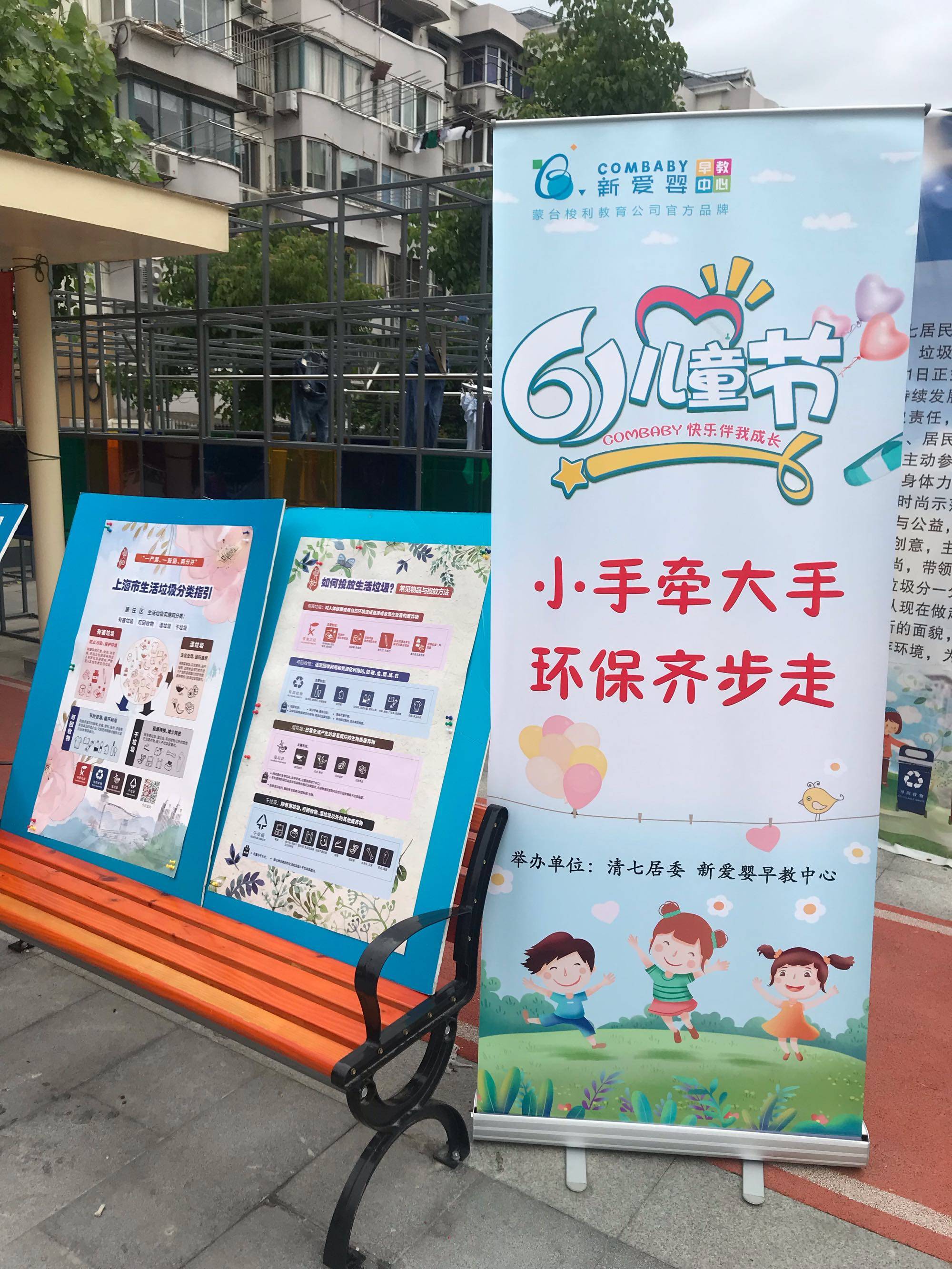 孩童时代最快乐的节日莫过于“六一”儿童节,为了让辖区内的儿童能度过一个快乐充实的儿童节。5月30日上午,在今年的“六一”即将到来之际,小区74号微更新平台上清七居民区携手共建单位新爱婴早教中心,共同举办了“小手牵大手,环保齐步走”六一主题活动。通过开展垃圾分类宣传教育活动,培养孩子们的环保意识和环保技能。
